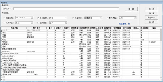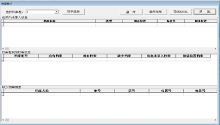 盤庫統(tǒng)計主要是對所有在庫檔案統(tǒng)計,找出放錯位置的檔案和寫過標(biāo)簽號但沒有進行檔案錄 入的檔案?梢灾付ü褡咏y(tǒng)計,也可以所有柜子統(tǒng)計。